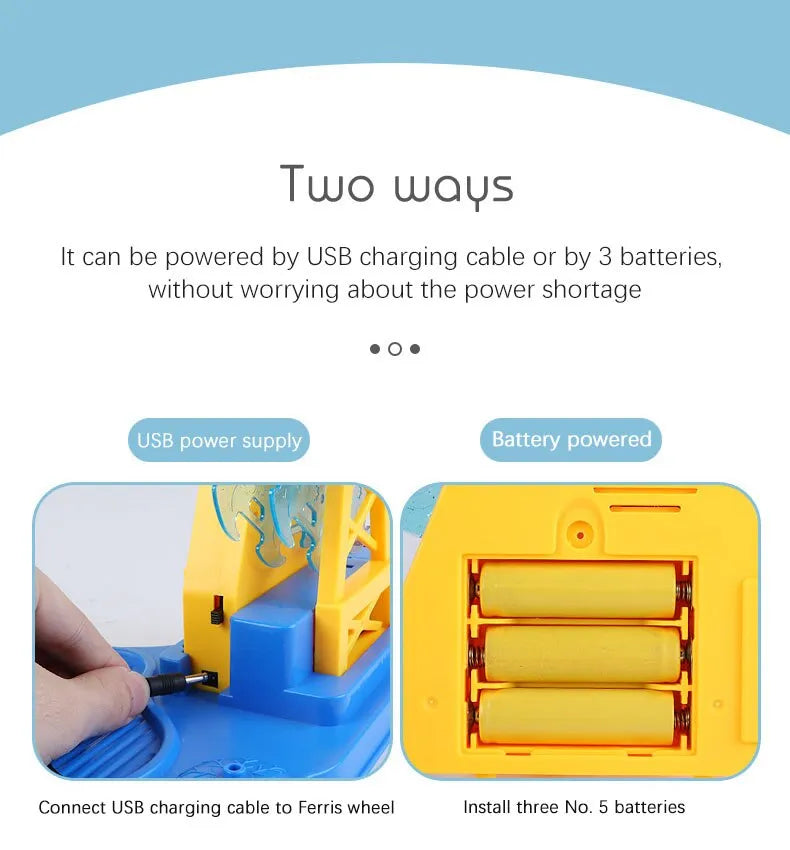 Dynamic Lights and Music: Built-in colorful lights and lively music create an engaging, eye-catching experience as the Ferris wheel rotates.