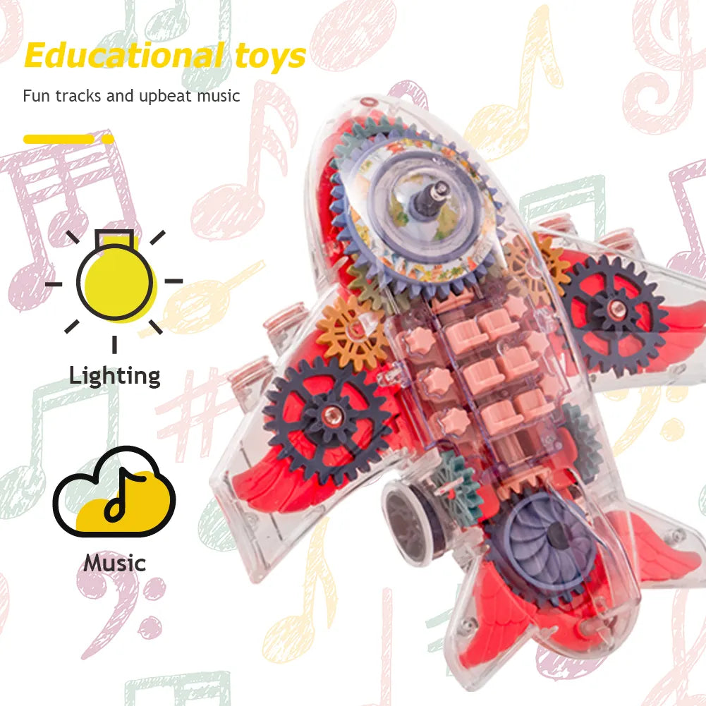 Electric Transparent Gear Airplane Toy with Music and Flashing Lights