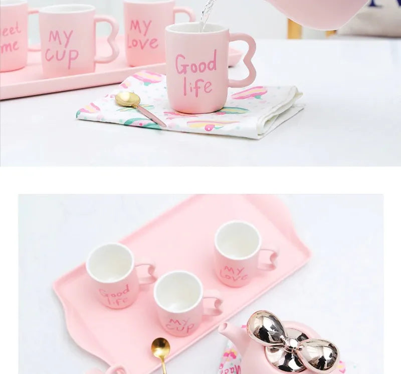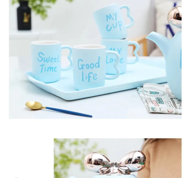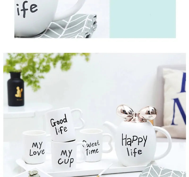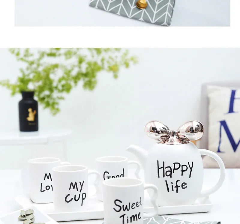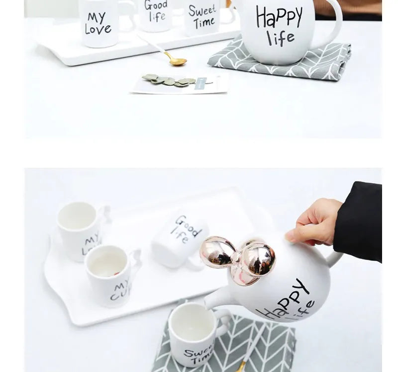 European Style Luxury Ceramic Coffee and Tea Cup Set 240ml with 1000ml Pot