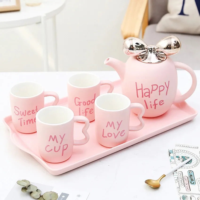 Six-Piece Set: Includes four 240ml cups, a 1000ml pot, and a matching tray.