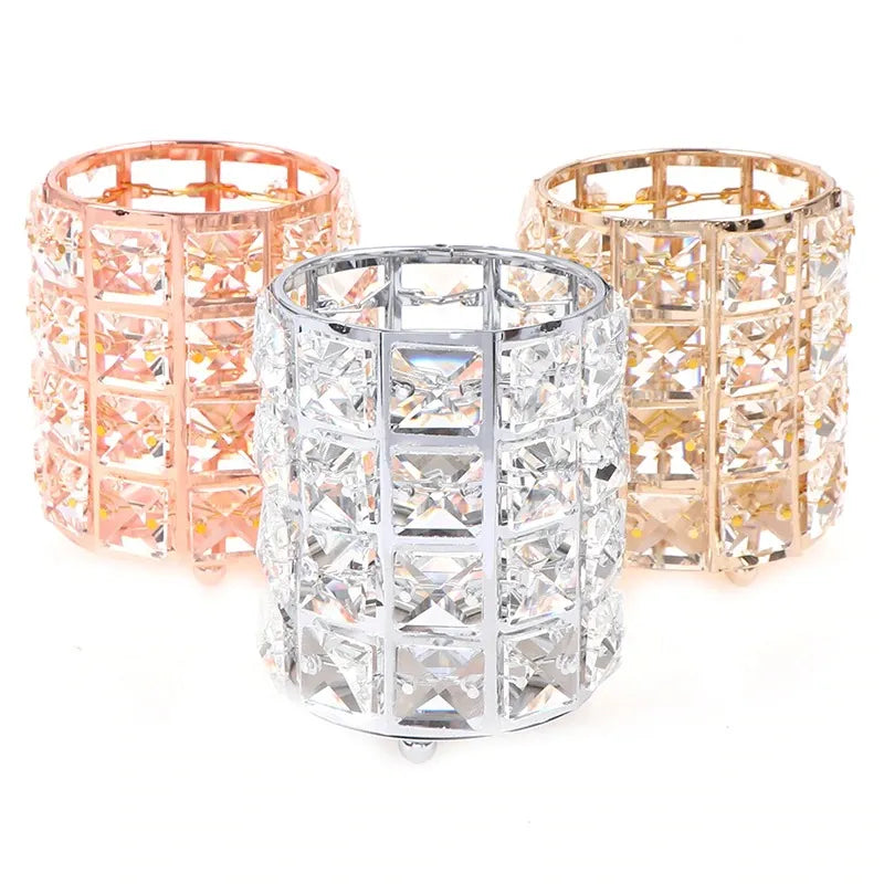 Fashion Women Makeup Brush Bucket Crystal Cosmetic Storage Vase in Gold Silver Rose