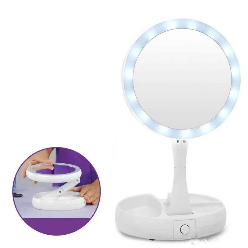 Foldable LED Mirror Lighted Make Up 10X Magnifying Double Sided Vanity Mirror