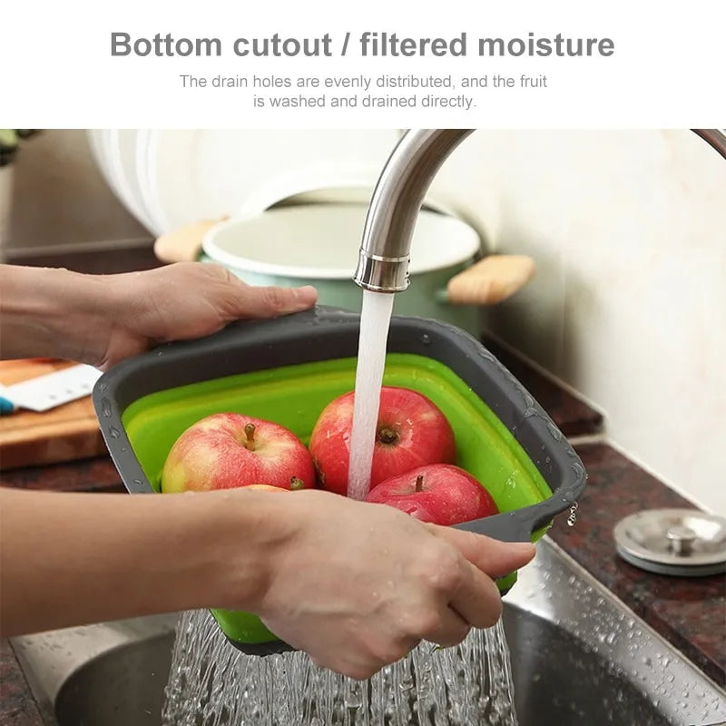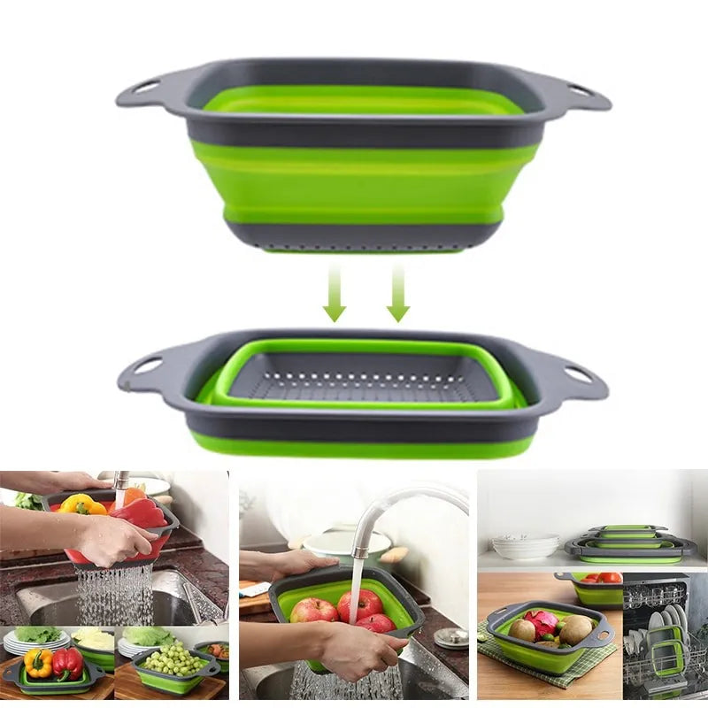 Foldable Silicone Square Drain Basket Kitchen Collapsible Fruit and Vegetable Strainer