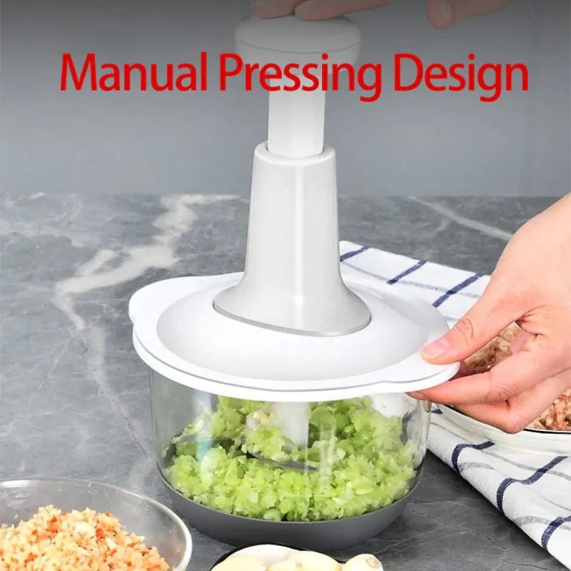 Four Blade Hand Pressure Vegetable Grinder Manual Kitchen Chopper Garlic Onion Masher 1500ml