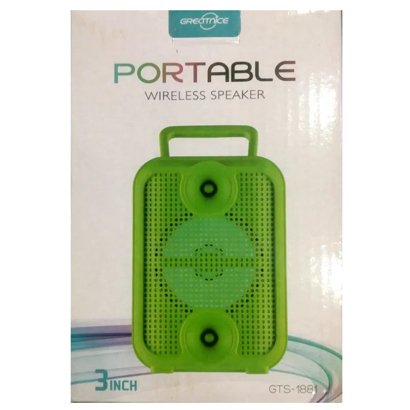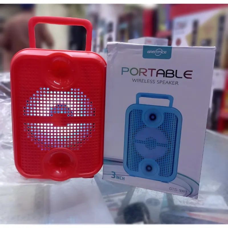 Turn any moment into a party with the GTS-1881 Portable 3-Inch Bluetooth Wireless Speaker, featuring vibrant dynamic lighting effects and powerful sound in a compact design. Built with durable ABS material and measuring just 10 x 8 x 14.1 cm, this mini speaker delivers crystal-clear audio via Bluetooth 5.0, USB, TF card, and LINE-IN input. Enjoy FM radio, TWS stereo pairing for dual-speaker setup, and up to several hours of playtime with the built-in 500mAh rechargeable battery. Perfect for indoor gatherings, outdoor adventures, or casual listening, the GTS-1881 combines style, portability, and performance. Available in Green, Black, Blue, or Red (random color selection).