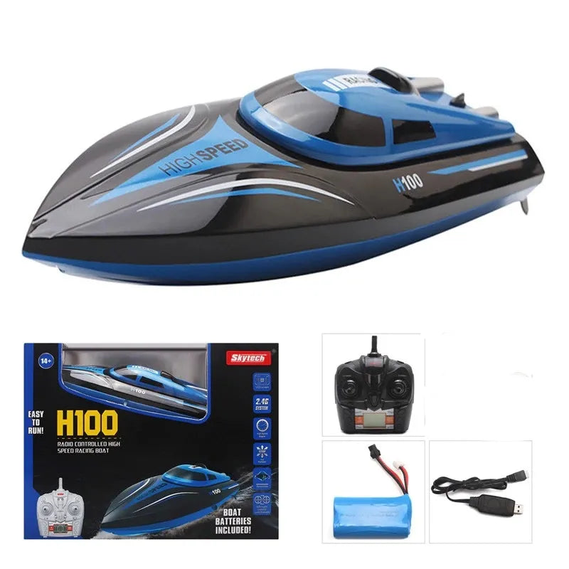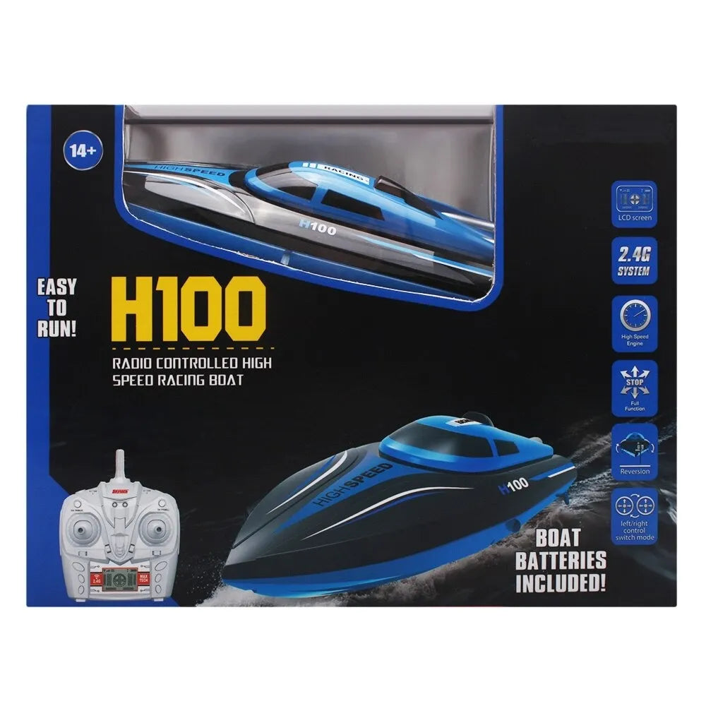 Experience thrilling aquatic adventures with the H100 Radio RC Racing Boat, a high-speed remote control boat designed for enthusiasts aged 14 and up. Part of the Toys & Games and RC Vehicles category, this 4-channel boat reaches speeds up to 30km/h, delivering an exhilarating experience on the water. Crafted from durable plastic and electronic components, it features a 2.4GHz wireless remote with an LCD screen for precise control and real-time data display. With automatic 180-degree turnover and flexible throttle modes, this RC boat is perfect for beginners, collectors, and RC toy fans looking for a high-performance gift.