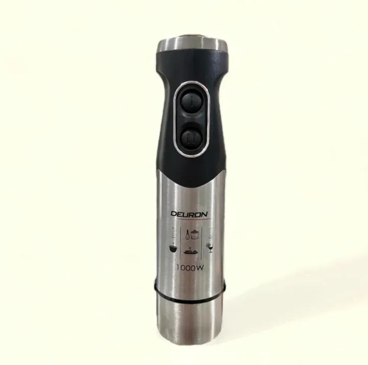 The Deuron Hand Blender Machine DN 1105 is a reliable and powerful electric hand blender designed for efficient everyday kitchen use. Equipped with a strong 1000 watt motor, this hand blender delivers smooth and consistent blending results for a variety of food preparation tasks. Its low splash design ensures a clean working experience, while the LED light indicator provides clear operational status during use.