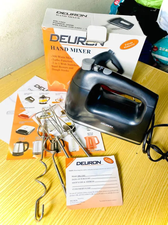 Made from premium quality materials, this hand mixer is suitable for daily kitchen use. It is simple to operate, easy to clean, and ideal for home cooking and baking needs. Whether you are preparing eggs, cake mixtures, or dough, the Deuron hand mixer offers convenience and dependable performance.