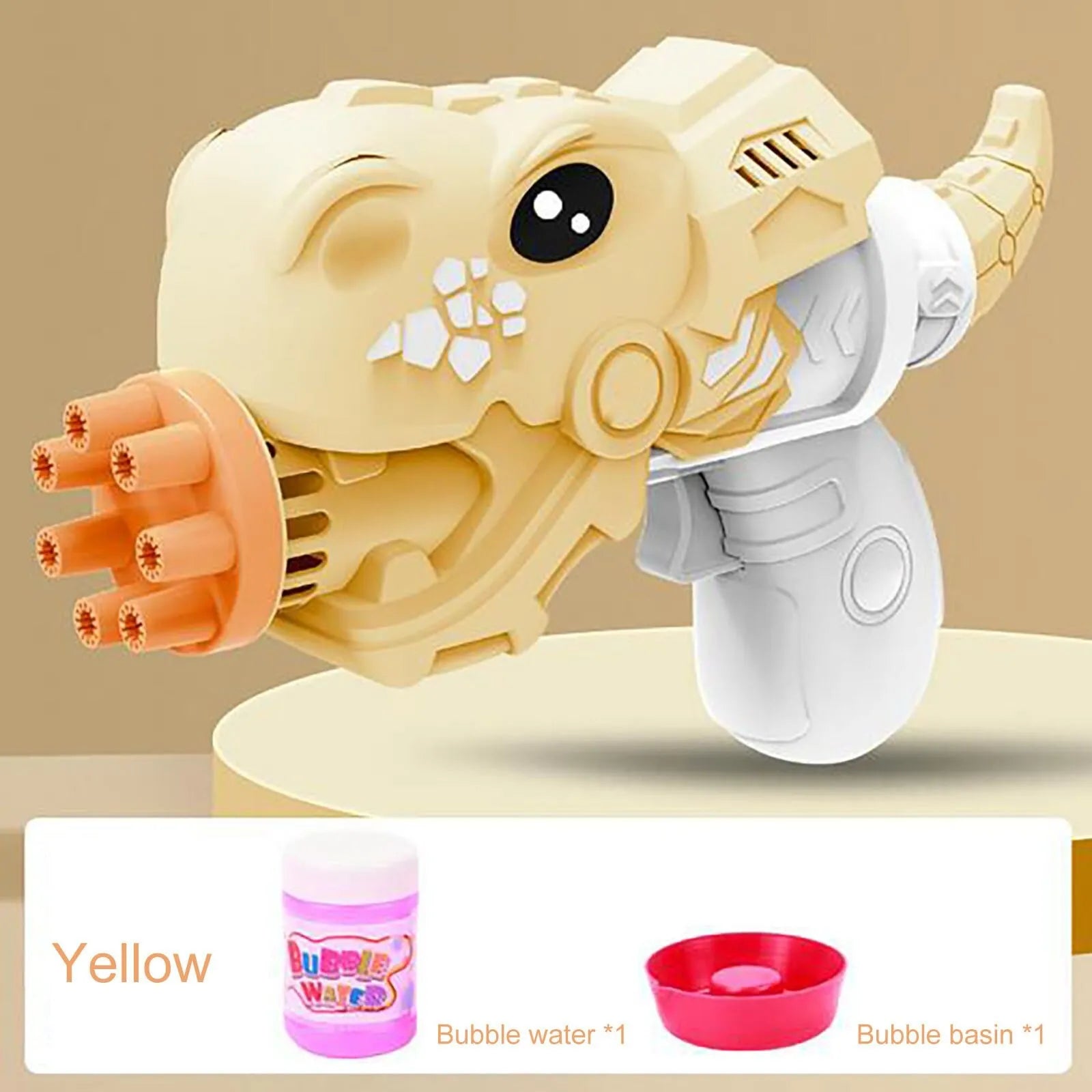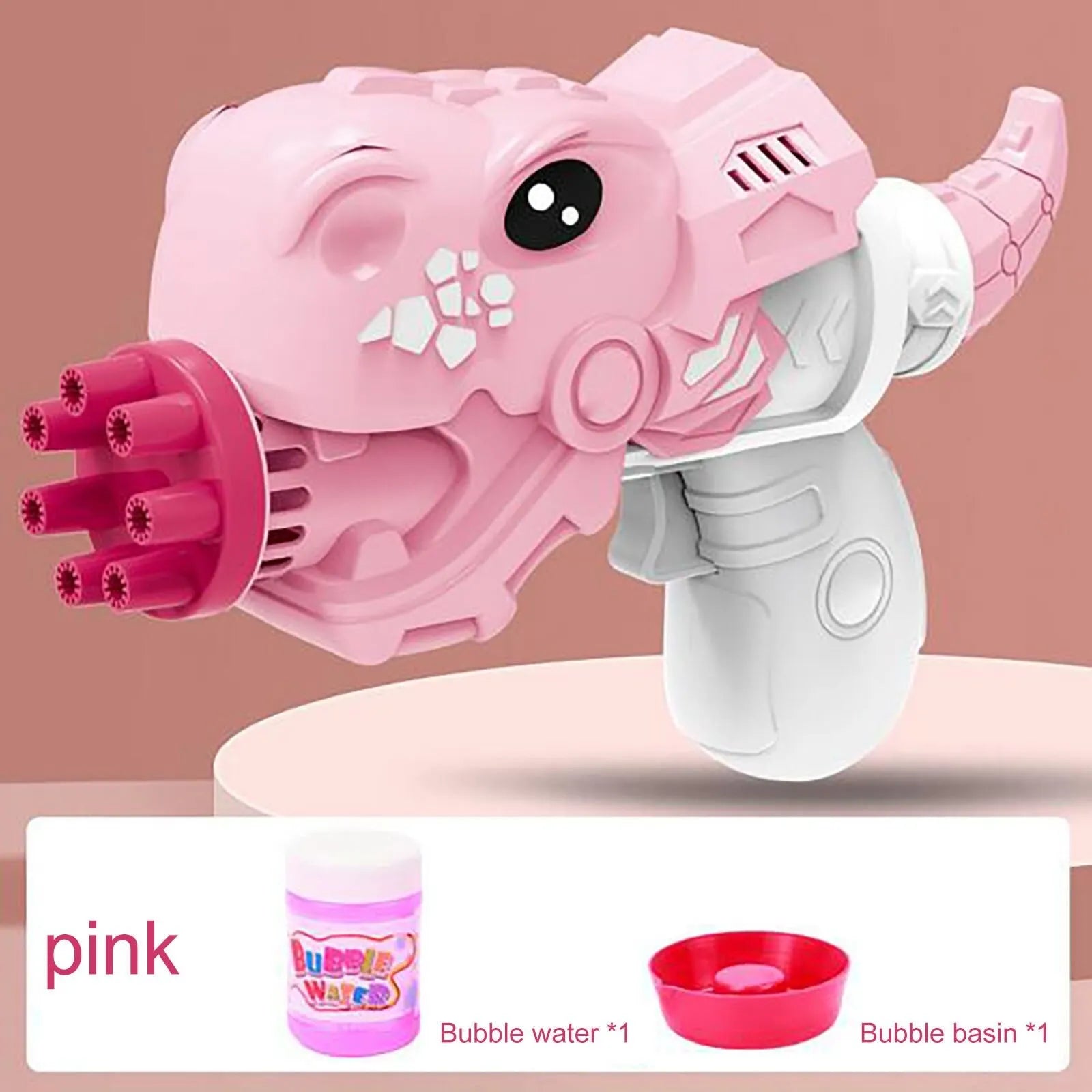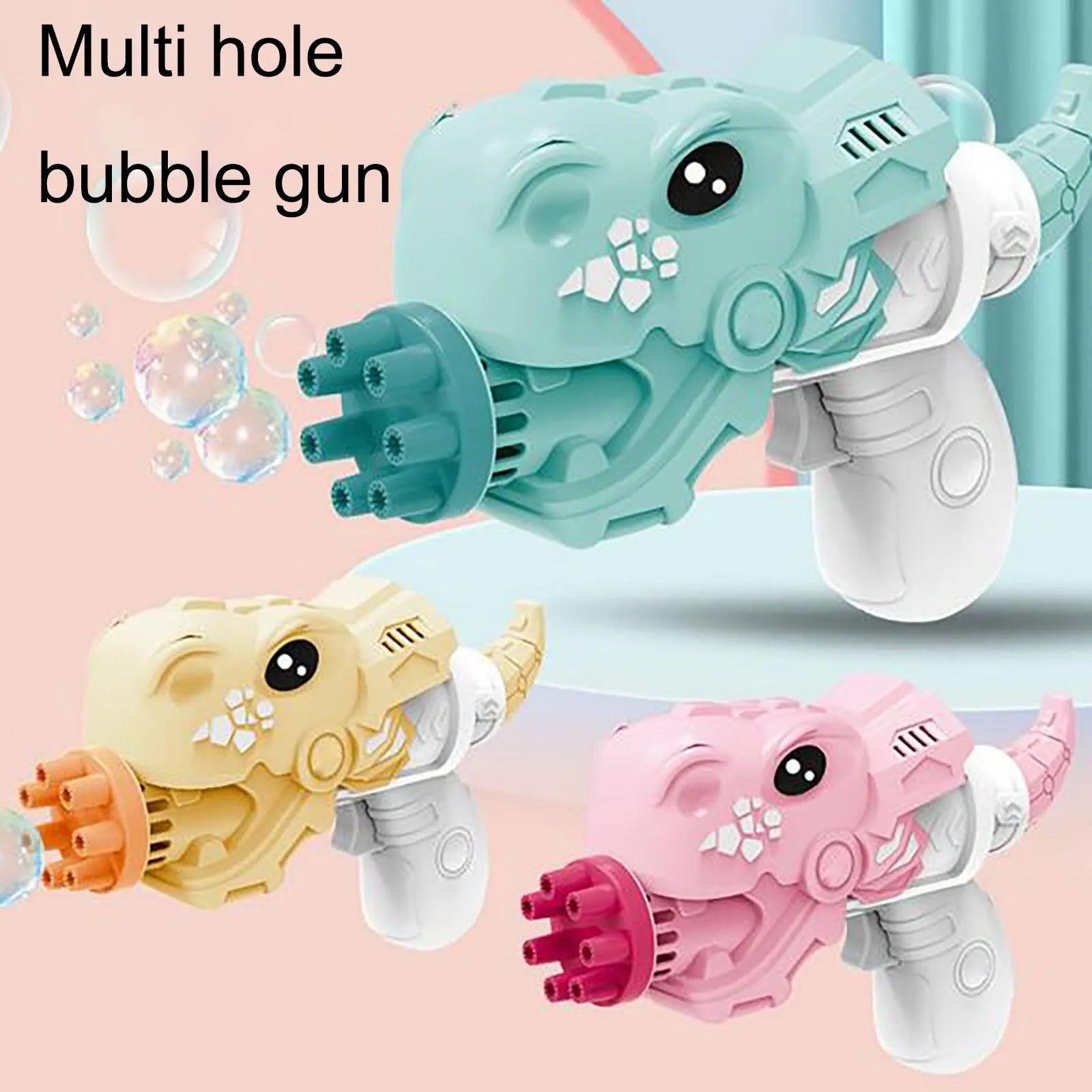 Happy Dinosaur Electric Bubble Machine 7-Hole Automatic Bubble Gun for Kids