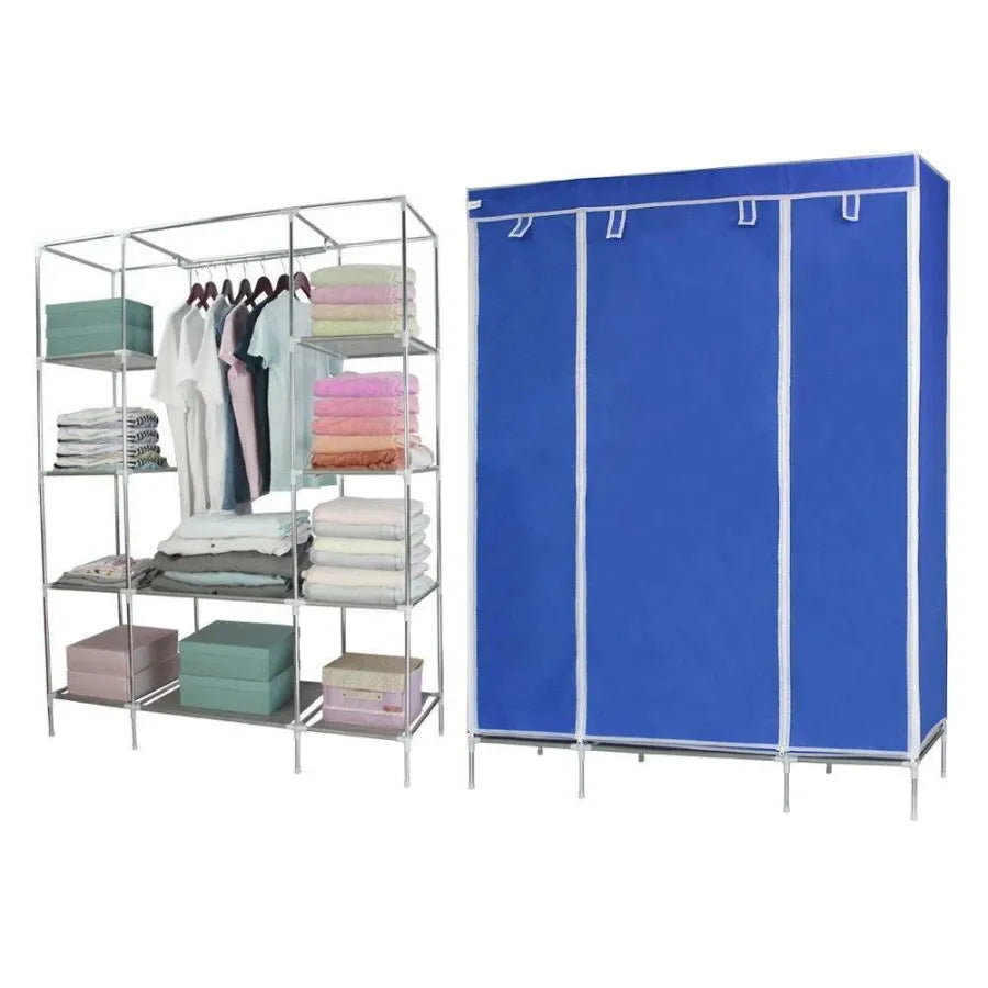 Maximize your bedroom storage with the HCX 68130 Portable Fabric Wardrobe—a spacious, lightweight, and easy-to-assemble 3-section organizer ideal for clothes, shoes, and accessories. Featuring a sturdy metal frame wrapped in durable, breathable fabric, this freestanding closet measures 135 x 42 x 174 cm and supports hanging garments on the full-width rail or folded items on three deep shelves. The innovative roller shutter (blind-style) front rolls up smoothly for full access and closes securely to protect contents from dust.