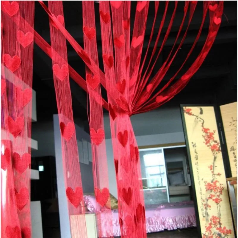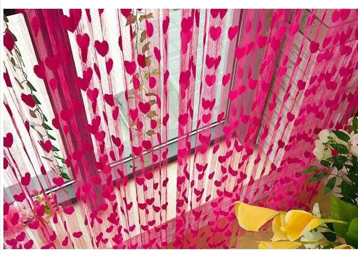 Heart Design Tulle Door Window Curtain 200x100cm for Bedroom Living Room Wedding Decor