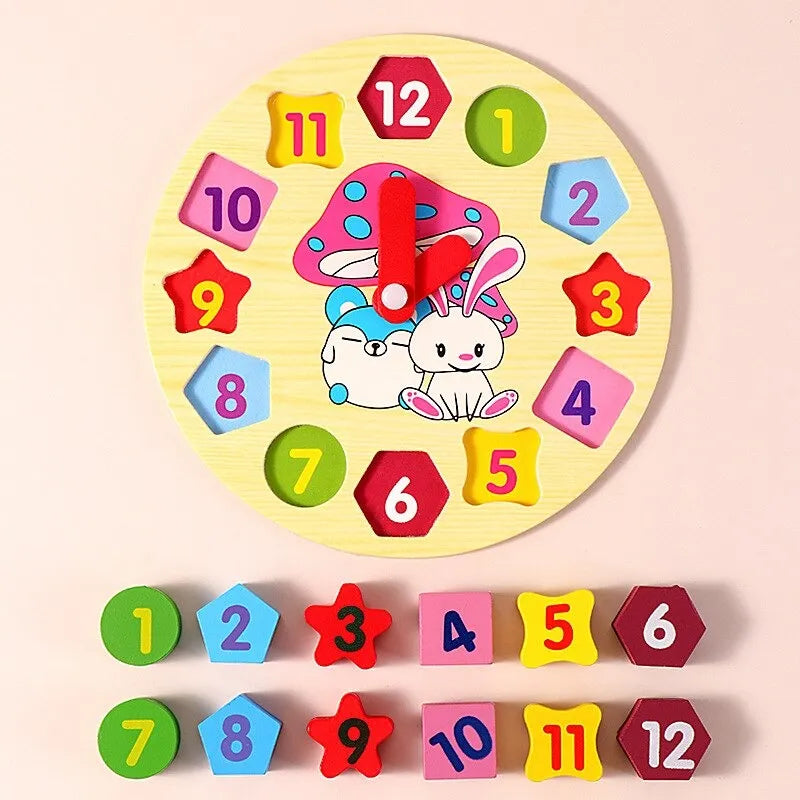 Introduce your child to time-telling and cognitive development with the High Quality Polished Wooden Digital Geometry Clock, an educational toy designed for kids aged 3 and up. Crafted from solid wood with smooth edges and non-toxic, multicolor paint, this personalized jigsaw-style clock features two rotatable hands and 12 removable number pieces, each paired with unique shapes and objects. This engaging puzzle helps children learn numbers, colors, shapes, and time concepts while enhancing hand-eye coordination and brain agility. Lightweight and durable, it’s perfect for home, classroom, or travel use and makes an ideal gift for birthdays or educational play.