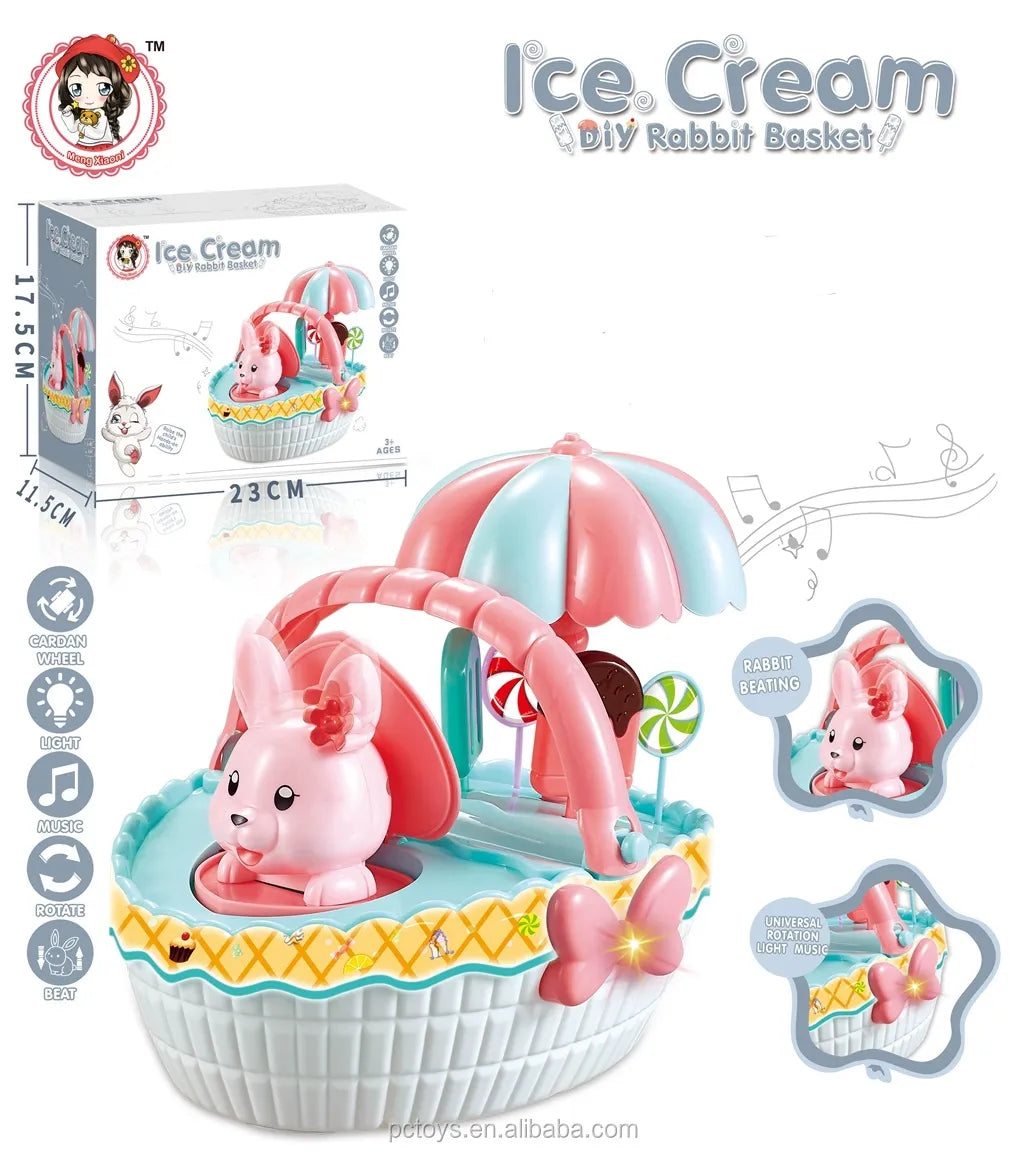 Ice-Cream Trolley Truck Bunny Ice Cream Basket with Music and Lights Toy | Fun Playset for Kids