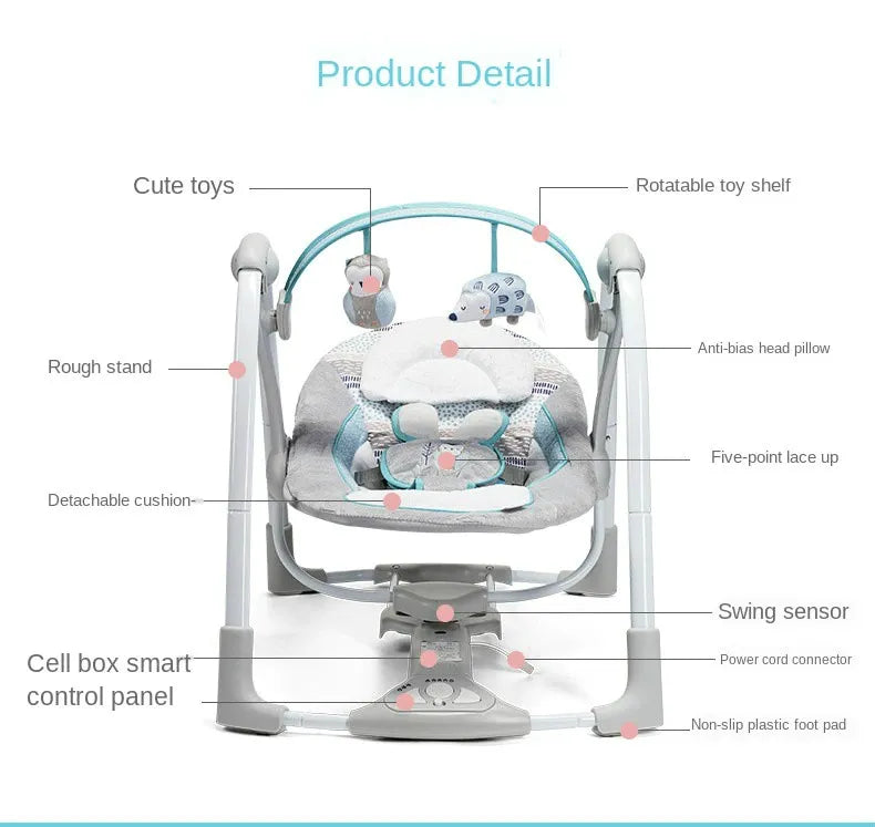 Quiet Operation: Extra-quiet motor ensures peaceful swinging for your baby.