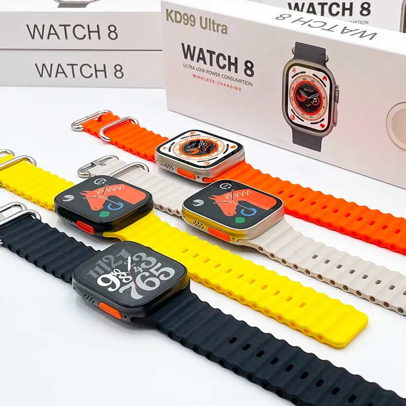 Elevate your fitness and connectivity with the KD99 Series 8 Ultra Smart Watch, a feature-packed wearable designed for active lifestyles and seamless communication. Boasting a vibrant 1.99-inch display with 320x380 resolution, this smartwatch offers sharp visuals and responsive touch controls. Powered by the BT8918B chip with Bluetooth 4.0/5.0, it supports phone calls, notifications, and fitness tracking, including heart rate and pedometer sensors. With IP67 waterproofing, wireless charging, and a customizable interface, the KD99 is perfect for workouts, daily use, and personalization.