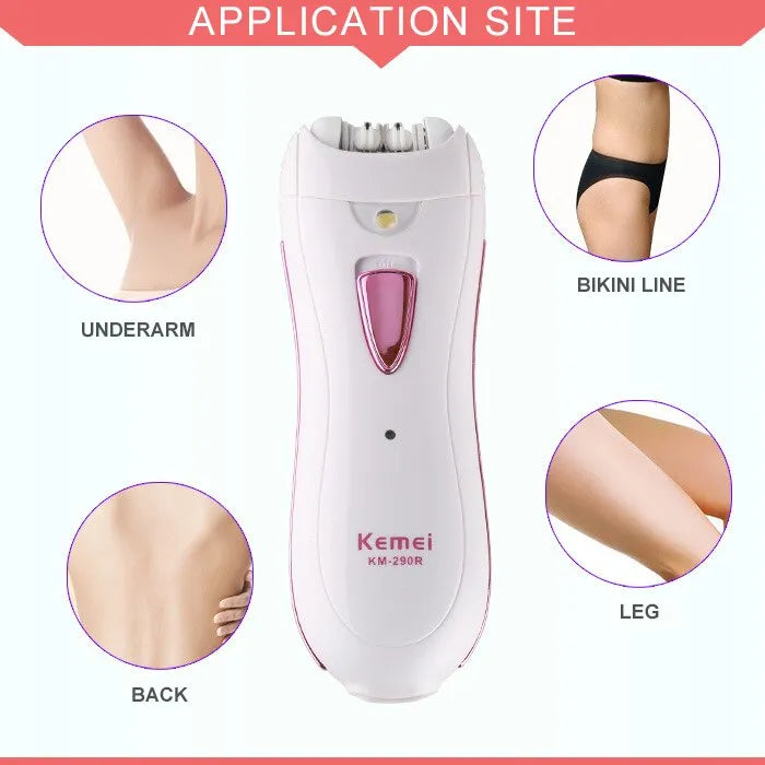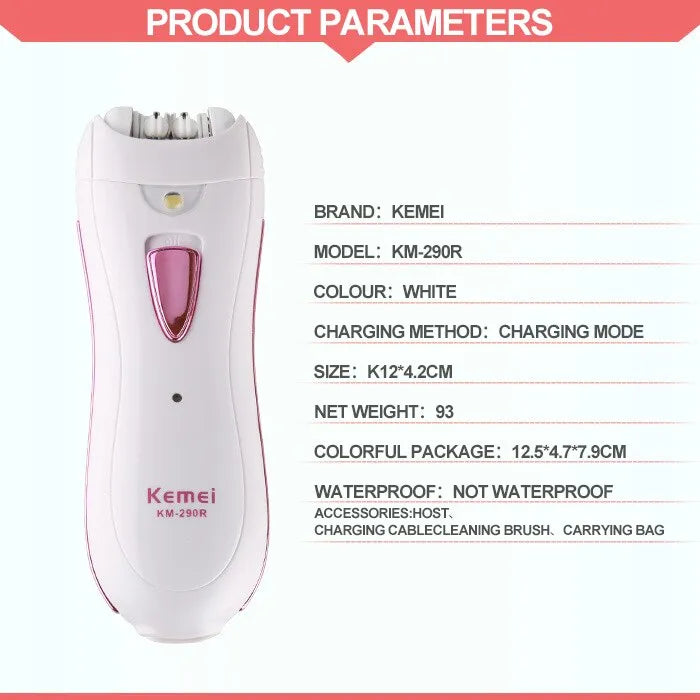 Kemei KM-290R Rechargeable Electric Hair Removal Device for Women Facial Armpit Bikini Line Legs Arms Epilator Lightweight Portable ABS White