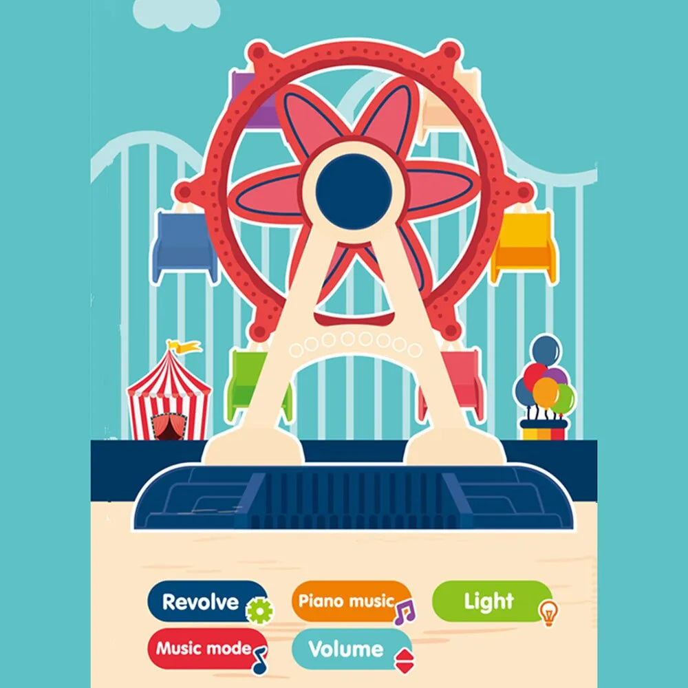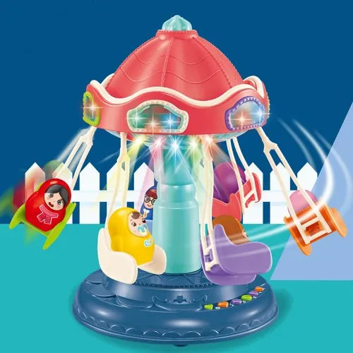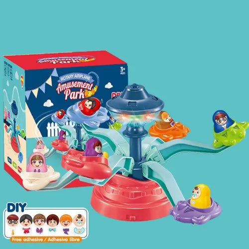 Kids Amusement Park Toy Set with Music LED Lights and 6 Dolls Rotating Airplane Swing Ferris Wheel