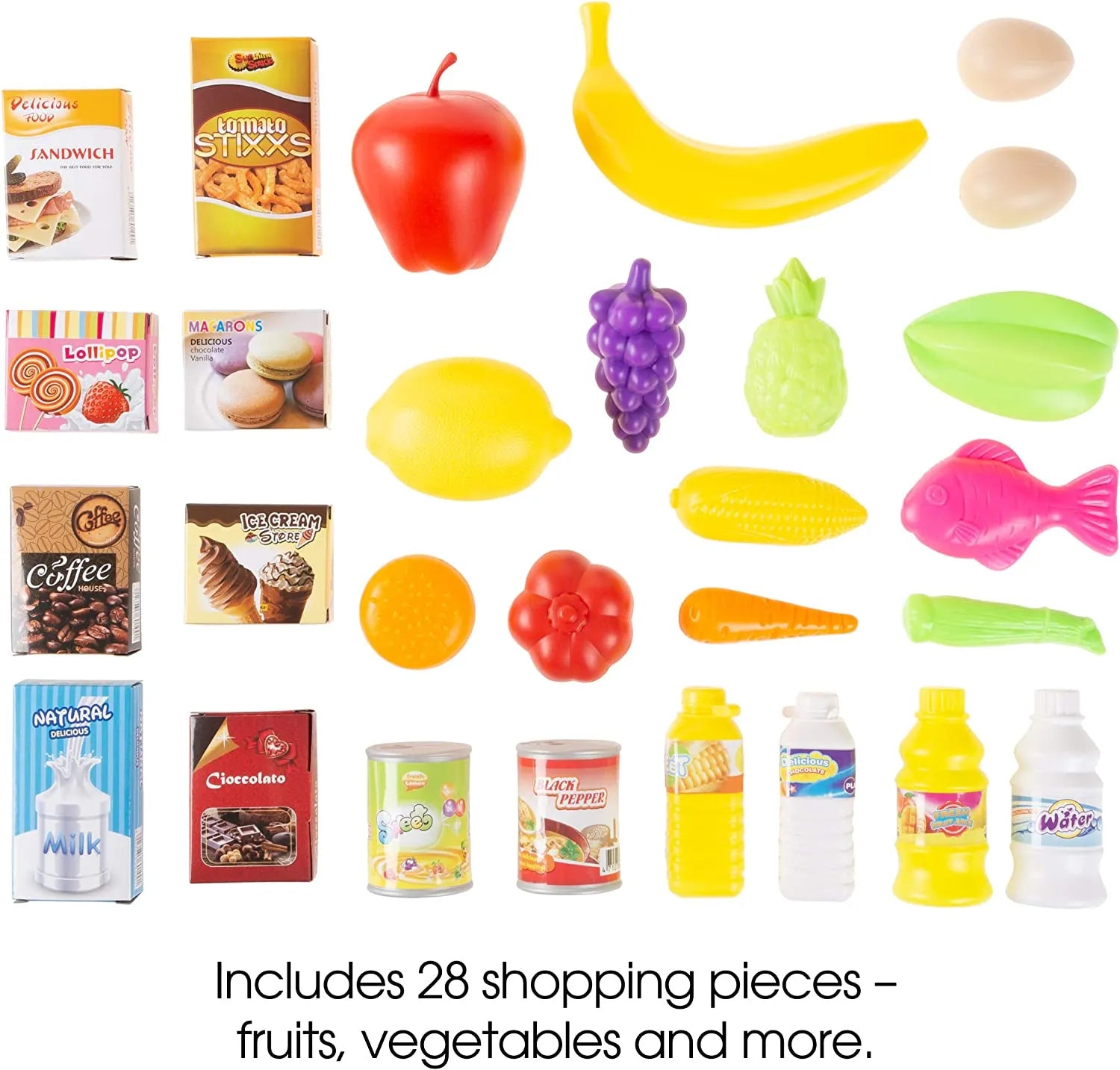 29 Play Accessories: Full grocery selection including fruits, treats, and more.