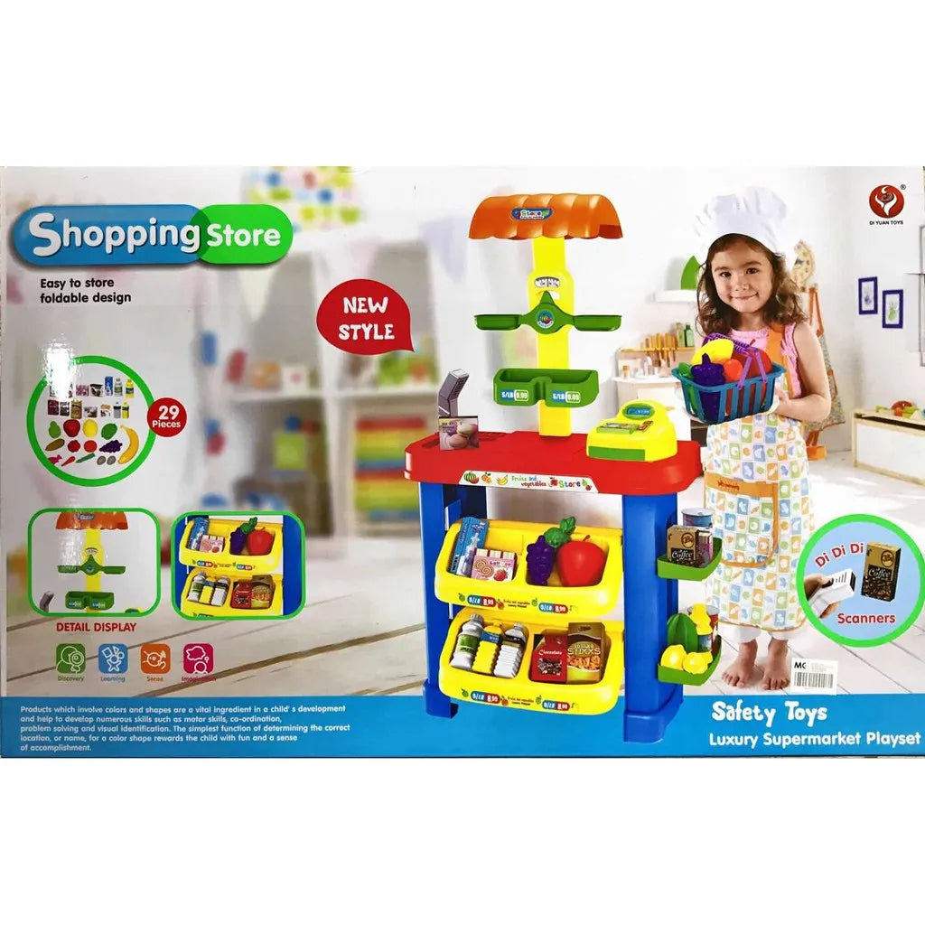 Kids Supermarket Grocery Store Stand Playset with Cash Register and 29 Accessories