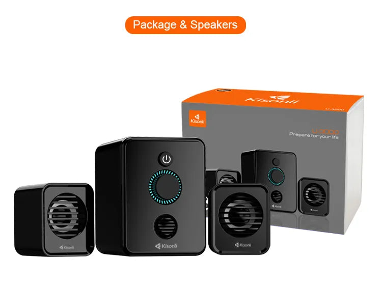 Kisonli U-3000 Big AUX USB 2.1 Portable Computer Speaker Black