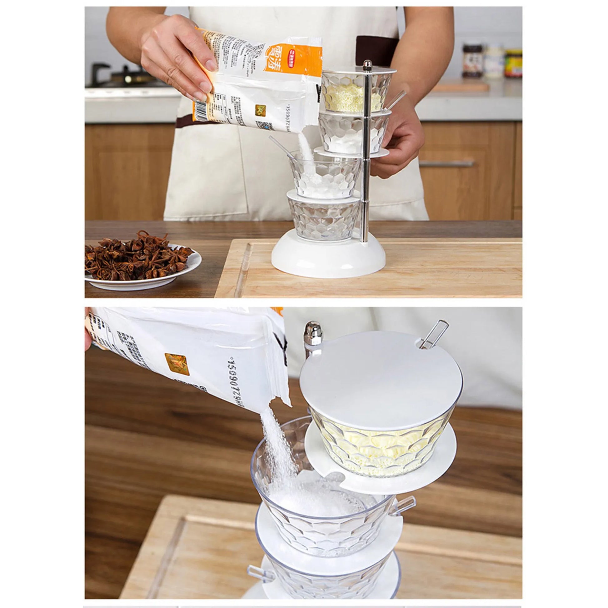 Transparent Jars with Spoons: Each compartment includes a spoon and dust-proof lid for convenience and hygiene.