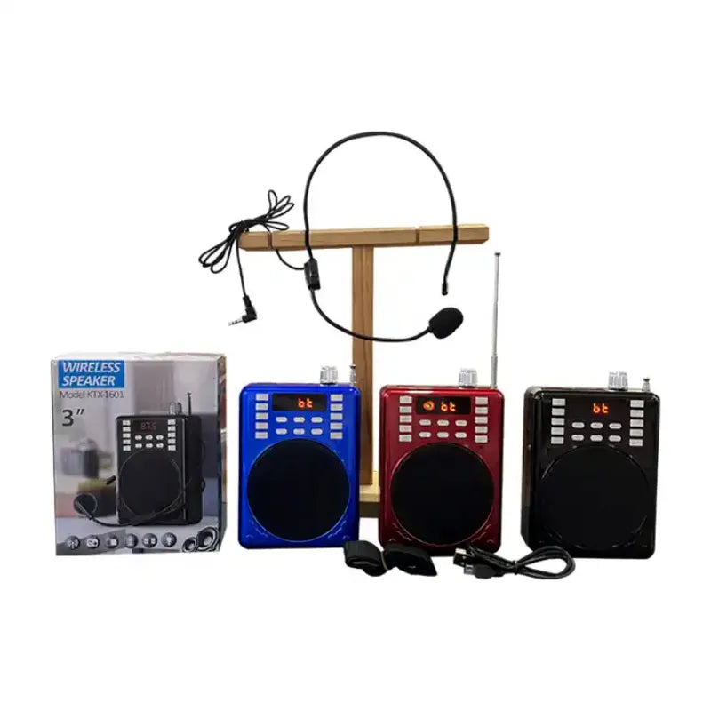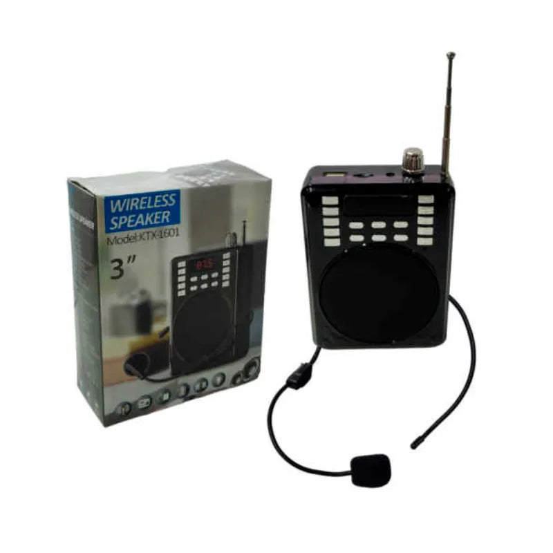 Experience powerful, portable sound with the KTX-1601 High Quality Multi-Functional Wireless Speaker, engineered for teachers, presenters, outdoor enthusiasts, and karaoke lovers. This compact 3-inch speaker delivers 5W of clear audio with deep bass, enhanced by Bluetooth 5.0 connectivity, FM radio, USB/TF card playback, and a built-in recorder. Complete with a wireless headset microphone and adjustable belt, it’s perfect for classrooms, meetings, speeches, or outdoor activities. The 1200mAh battery ensures long-lasting performance, while the LED light adds ambiance. Available in Red, Blue, or Black (random color selection). Note: Product is currently out of stock.