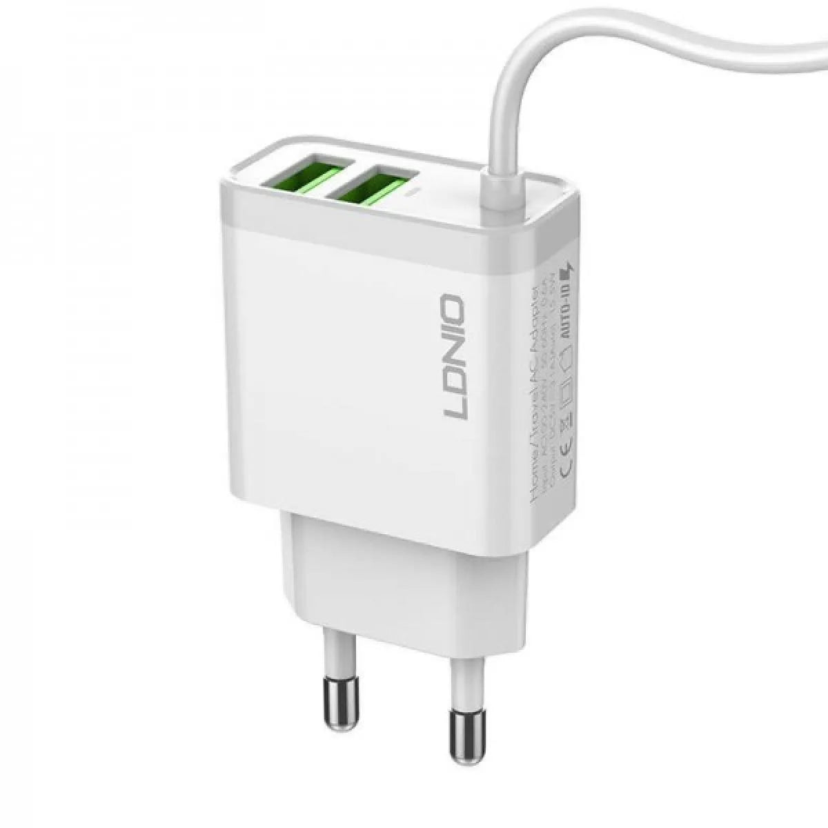 LDNIO A321 Universal Dual Port USB Travel Charger 15.5W Fast Charging Wall Adapter for Mobile Phone White