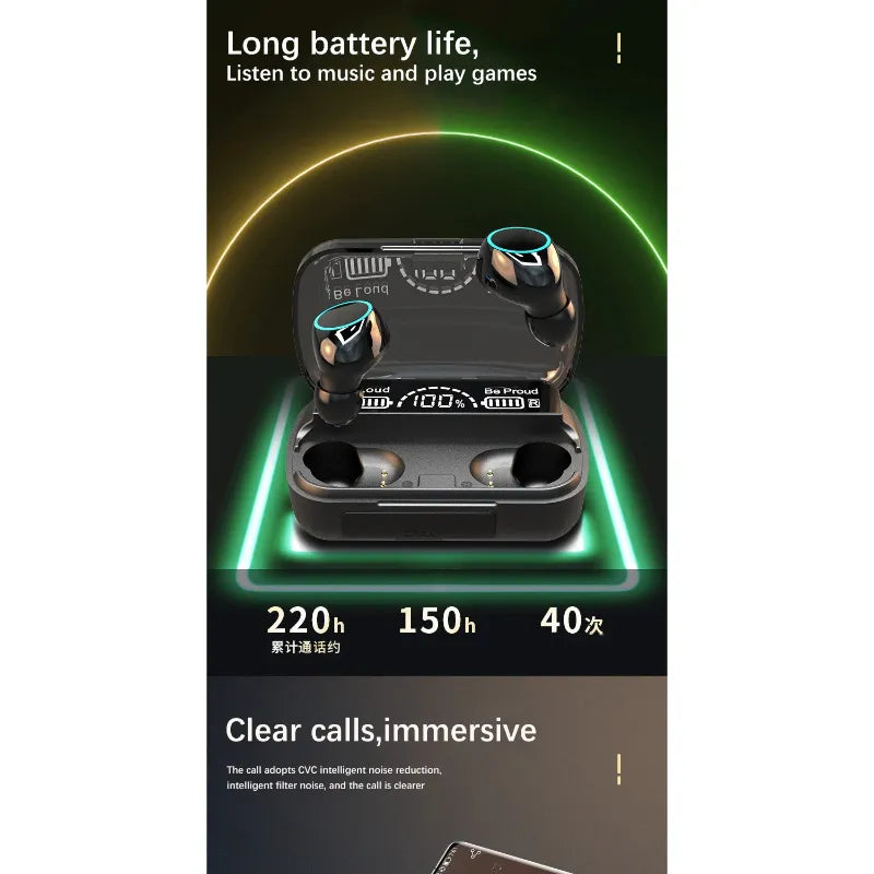 Experience premium audio with the M30 TWS Bluetooth 5.2 Wireless Earbuds, designed for music enthusiasts, gamers, and active individuals. These earbuds feature advanced Bluetooth 5.2 technology for fast, stable connections and low-latency performance, ideal for gaming and immersive sound. With IPX7 waterproofing, a high-definition microphone, and smart touch controls, the M30 earbuds deliver crystal-clear audio, deep bass, and reliable call quality. The compact charging case supports fast USB-C charging, providing up to 4 hours of music or talk time and an impressive 150-hour standby time.