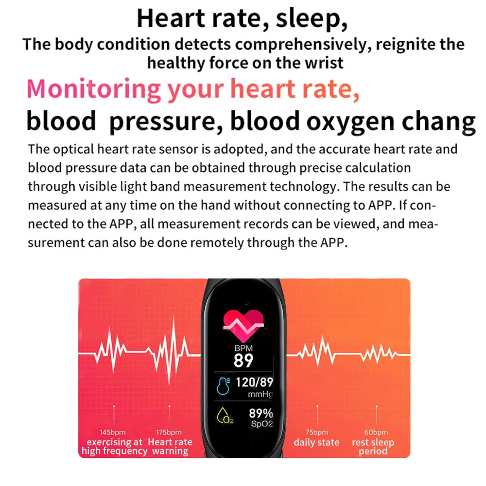 The M7 Smart Fitness Band combines style, functionality, and durability, making it an essential companion for fitness enthusiasts and busy individuals.