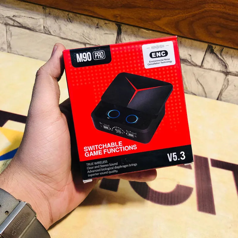Elevate your audio experience with the M90 Pro TWS Wireless Bluetooth Earbuds, engineered for music lovers, commuters, and fitness enthusiasts. Featuring advanced Bluetooth 5.3 technology, these earbuds deliver seamless connectivity, crystal-clear sound, and a robust 1200mAh charging case that doubles as a power bank. Designed for all-day comfort, their lightweight construction and secure fit make them ideal for workouts, travel, or prolonged use. With an IPX5 waterproof rating and intuitive touch controls, the M90 Pro offers convenience and durability in a sleek, stylish package.
