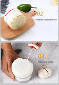 Chop garlic, onions, herbs, nuts, and vegetables in seconds with the Mini Manual Food Chopper Garlic Grinder. This compact 170ml handheld processor requires no electricity — just place ingredients inside, lock the lid, and pull the cord a few times for perfectly minced results.