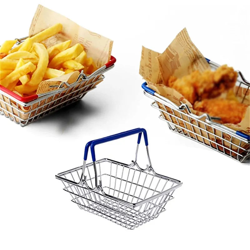 Ideal for serving hot fried foods like French fries, fried chicken, onion rings, tempura, or vegetables straight from the fryer to the table. The hand-carry handle (random color) makes it easy and fun to pass around during family meals, parties, or outdoor picnics. Use it as a creative mini serving tray, dinner plate alternative, or even a stylish holder for small items like jewelry, snacks, condiments, or party favors.