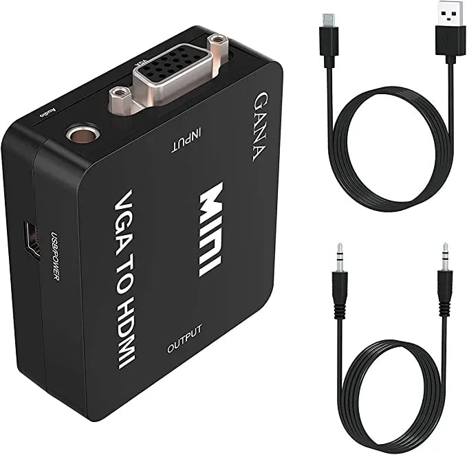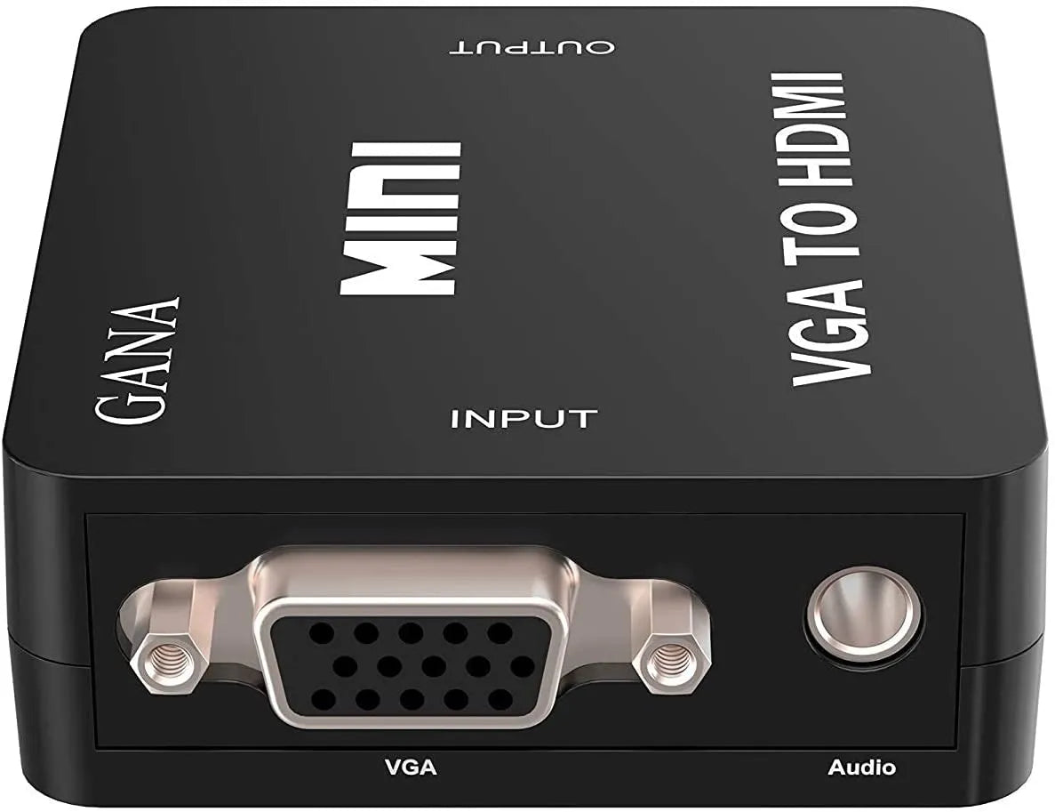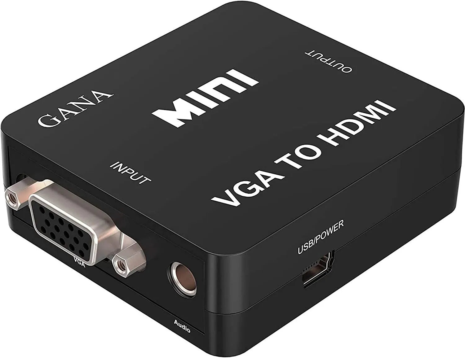 Upgrade your connectivity with the GANA Mini VGA to HDMI Converter Adapter, designed to bridge devices with VGA outputs to modern HDMI-compatible displays. This compact, black adapter supports high-definition resolutions up to 1080p, delivering crisp visuals and clear audio through its integrated 3.5mm audio port and USB power cable. Perfect for connecting desktops, laptops, or HD TV boxes to monitors, HDTVs, or projectors, this plug-and-play converter ensures seamless performance without the need for driver installation, making it an essential tool for home entertainment or professional setups.