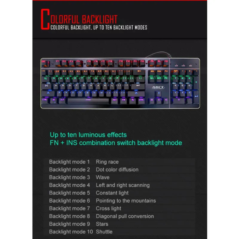 10 RGB Backlight Modes: Vibrant 7-color lighting for a dynamic gaming atmosphere.