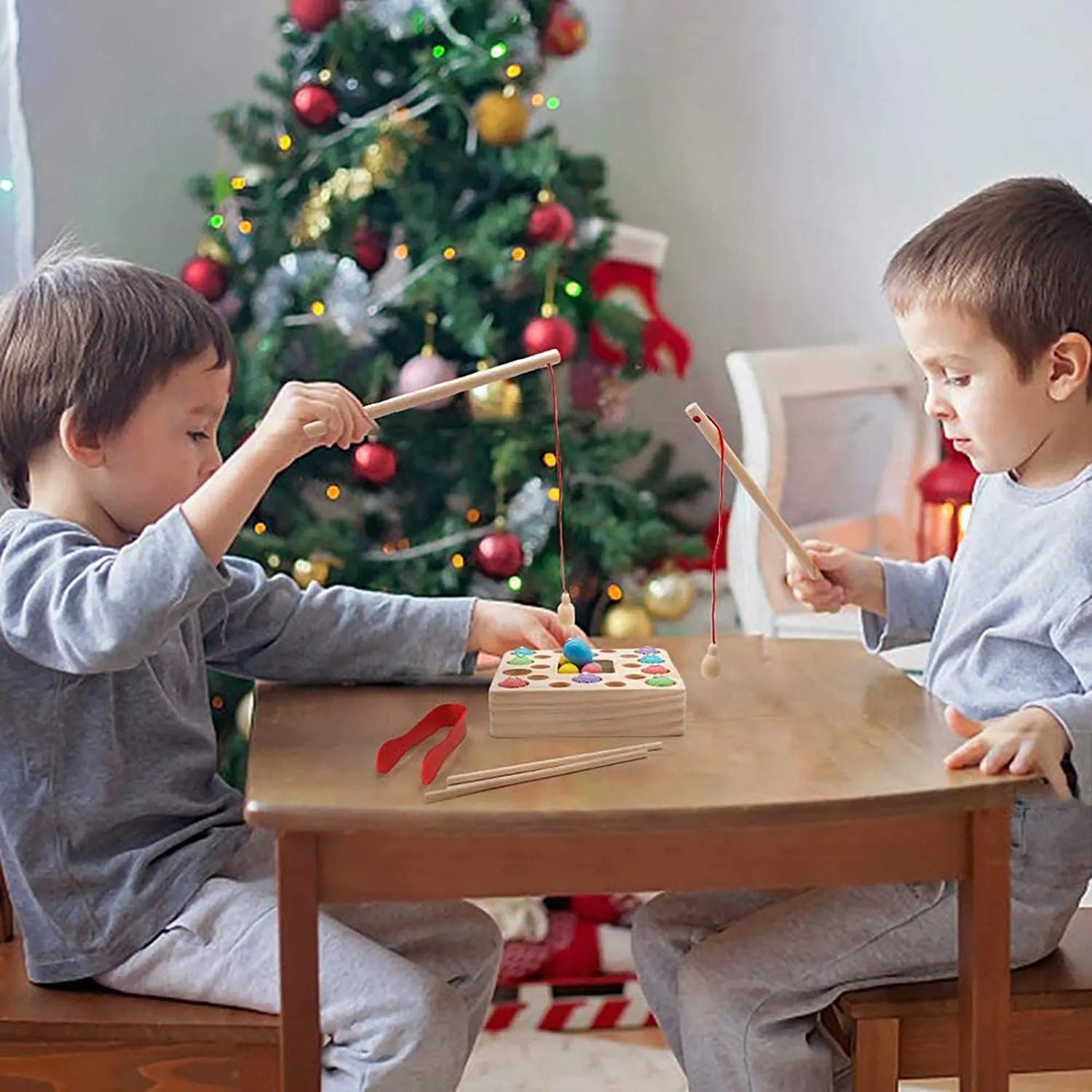Magnetic Fishing Fun: Catch 10 wooden fish with 2 magnetic rods.