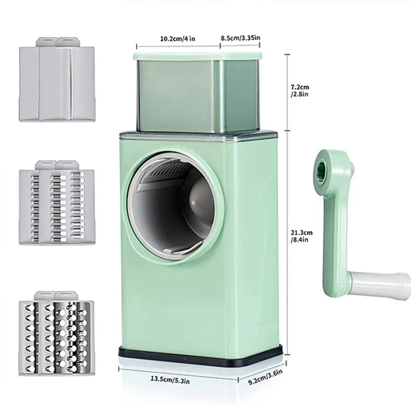 Multi-Functional Manual Vegetable Cutter Rotary Grater with Handle 3-in-1 Stainless Steel Blades