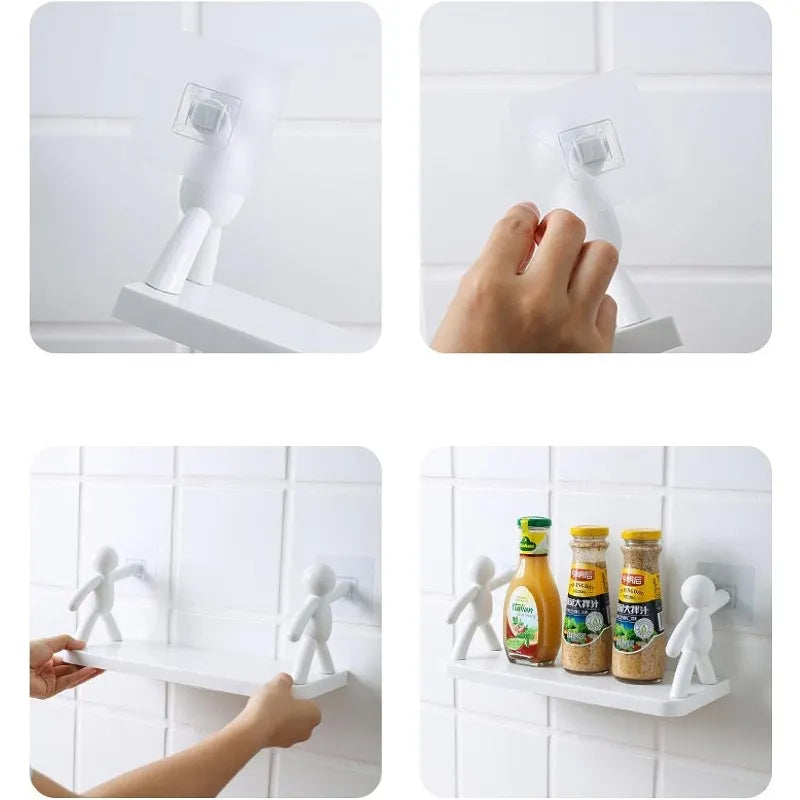 Organize and enhance your space effortlessly with the Multi-Purpose Self-Adhesive Wall Hanging Storage Shelf. This high-quality white plastic shelf features a strong, durable adhesive backing for secure, no-drill installation, making it perfect for renters or anyone avoiding wall damage. With its sleek rectangular design and unique humanoid bracket aesthetic, it blends seamlessly into modern, contemporary, or minimalist interiors while providing reliable storage. Ideal for bathrooms, kitchens, bedrooms, living rooms, offices, laundry areas, garages, and more – including above toilets or in pantries. This versatile floating shelf maximizes vertical space, keeps essentials within reach, and adds a decorative touch to any room. Quick to install in just 5-10 minutes with no tools required, it offers a practical, eco-friendly storage solution that combines functionality with stylish appeal.