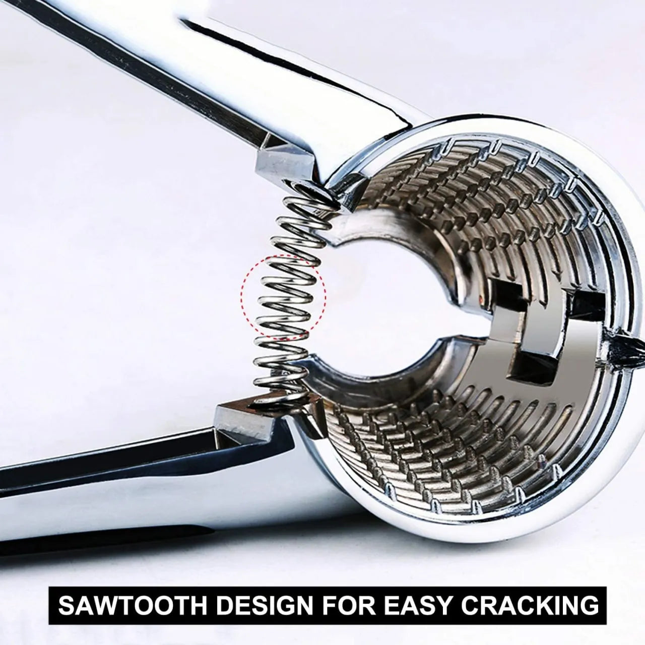 Effortless Spring Mechanism: Cracks hard nuts with minimal force.