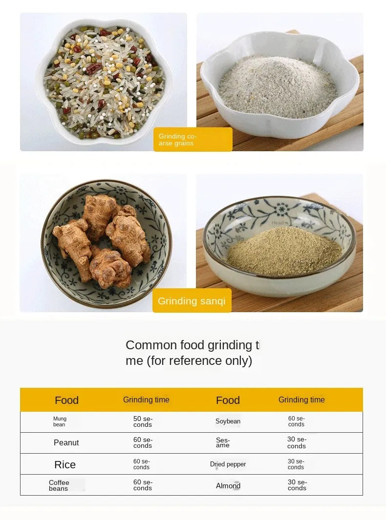 Powerful 150W Motor → Ultra-fast grinding of coffee, spices, herbs, grains, nuts, and beans.