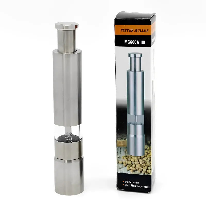 One Handed Thumb Push Stainless Steel Spice Grinder Salt Pepper Mill