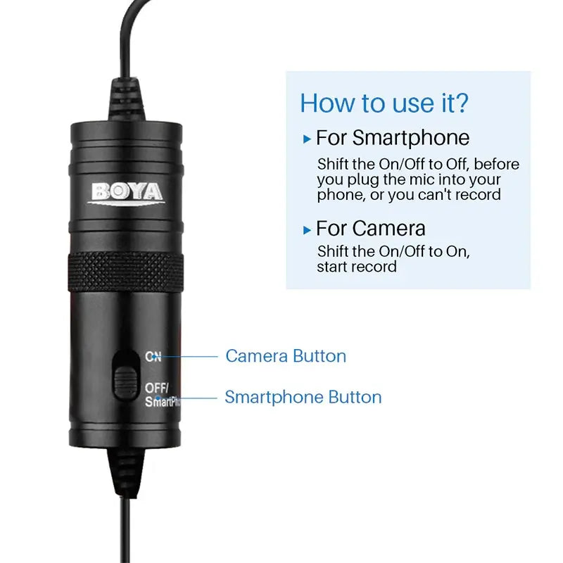 Original BOYA BY-M1 3.5mm Lavalier Lapel Microphone for Smartphone DSLR Recording Black