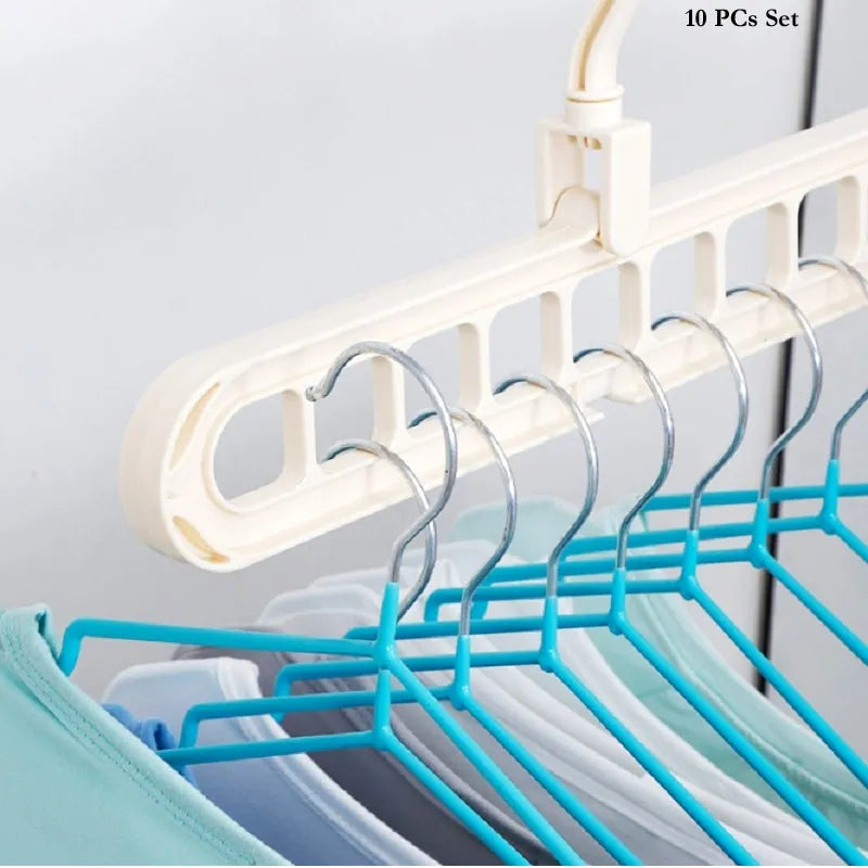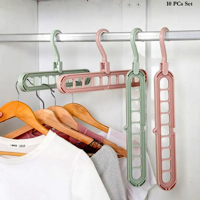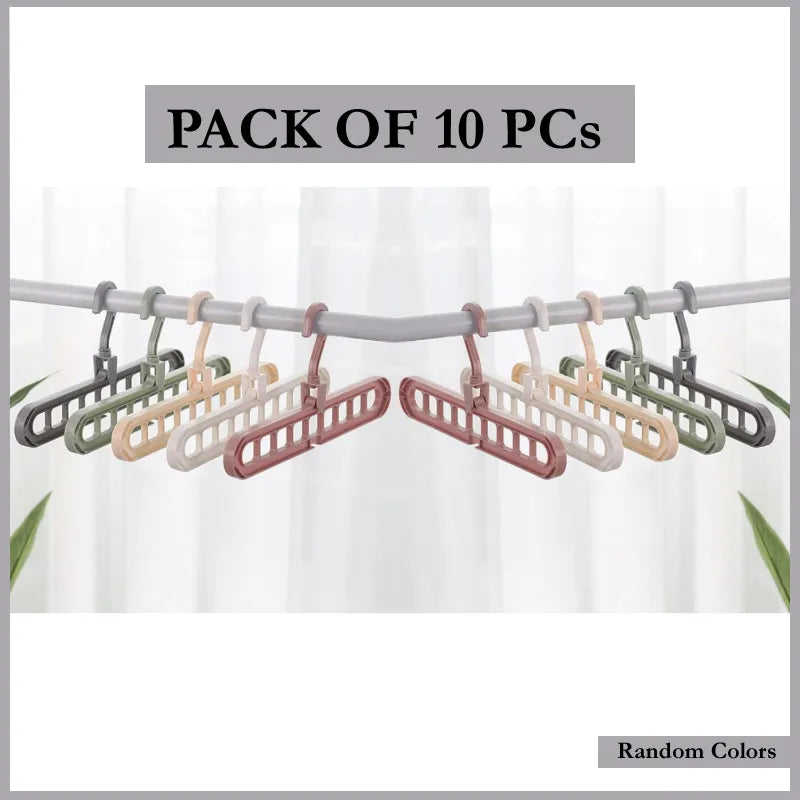 Maximize your closet space and keep clothes neatly organized with the Pack of 10 Rotate Anti-Skid Folding Hangers. These innovative space-saving hangers are perfect for homes, dormitories, apartments, or any area with limited storage. Designed with durable PP plastic construction, each hanger features a sturdy build, anti-skid surface to prevent clothes from slipping, and a 360-degree rotating hook for easy access and flexible positioning. The adaptable joints and built-in track buckle allow both horizontal and vertical hanging, making them ideal for wardrobe organization as well as drying wet clothes after laundry.