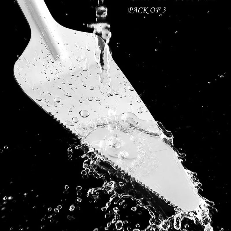 Upgrade your kitchen essentials with this Pack of 3 High-Quality Stainless Steel Cake and Pizza Servers. Each server combines a sharp serrated edge for precise cutting with a wide, sturdy blade for easy serving, making it a versatile 2-in-1 tool for cakes, pies, quiches, and pizzas. Crafted from premium stainless steel, these servers offer excellent durability, rust resistance, and a polished silver finish that adds elegance to any kitchen or dining table. The comfortable, weighted handle ensures a secure grip for effortless cutting and serving, even with thick-crust pizzas or dense cakes. Hangable design saves drawer space and keeps tools within easy reach. Perfect for home bakers, party hosts, professional caterers, and everyday use.