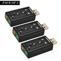 Pack of 3 Mini External USB 7.1 Channel 3D Audio Sound Card Adapter with 3.5mm Jacks