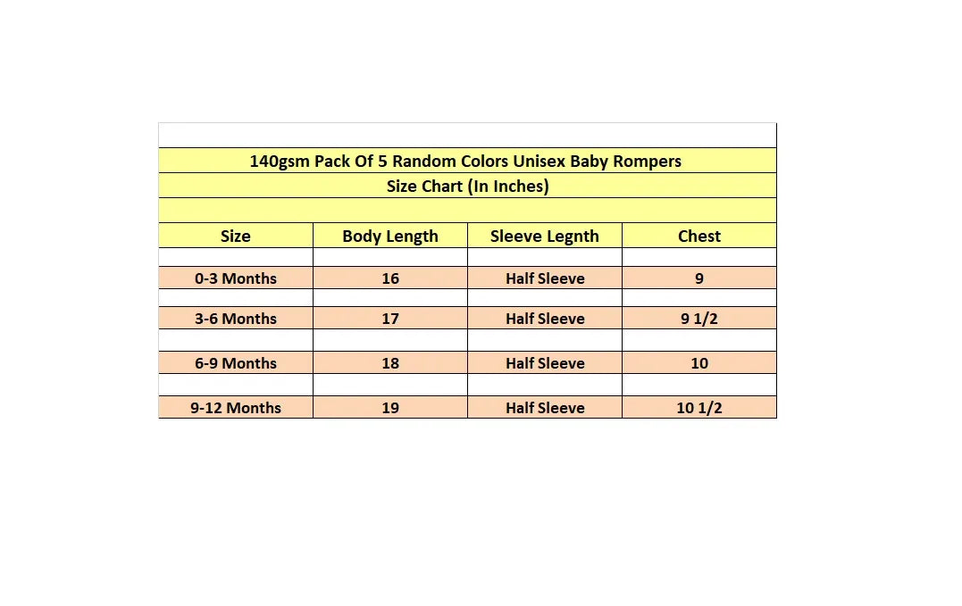 Dress your little one in comfort and style with this Pack of 5 Unisex Baby Rompers, crafted from 100% cotton (140gsm) for ultimate softness and breathability. Designed for newborns and infants aged 0-12 months, these short-sleeve, O-neck rompers feature a solid pattern and covered button closure for easy dressing and diaper changes. Perfect for spring and summer, this set comes in random vibrant colors, adding versatility to your baby’s wardrobe. Available in sizes 0-3, 3-6, 6-9, and 9-12 months, these rompers offer a true-to-size fit, ensuring your baby stays cozy and stylish all day long.