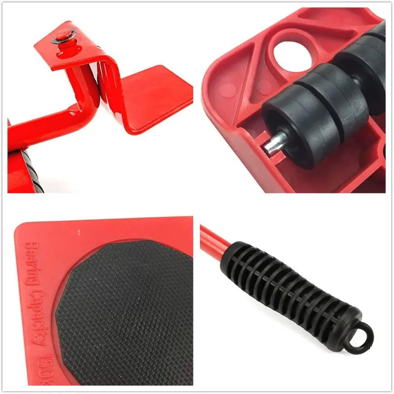 Professional Furniture Transport Lifter Tool Set Heavy Duty Moving Wheels with Lifting Rod Red