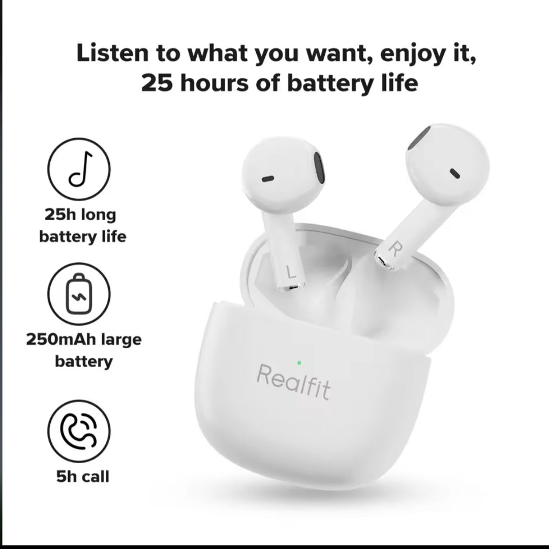 Realfit F1 Earbuds True Wireless Earbuds with Compact Charging Case Sleek Design & High-Quality Sound