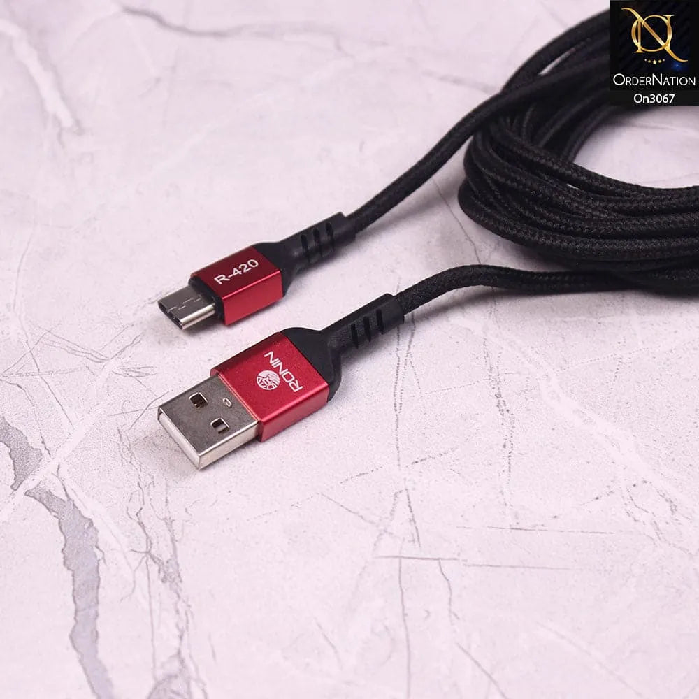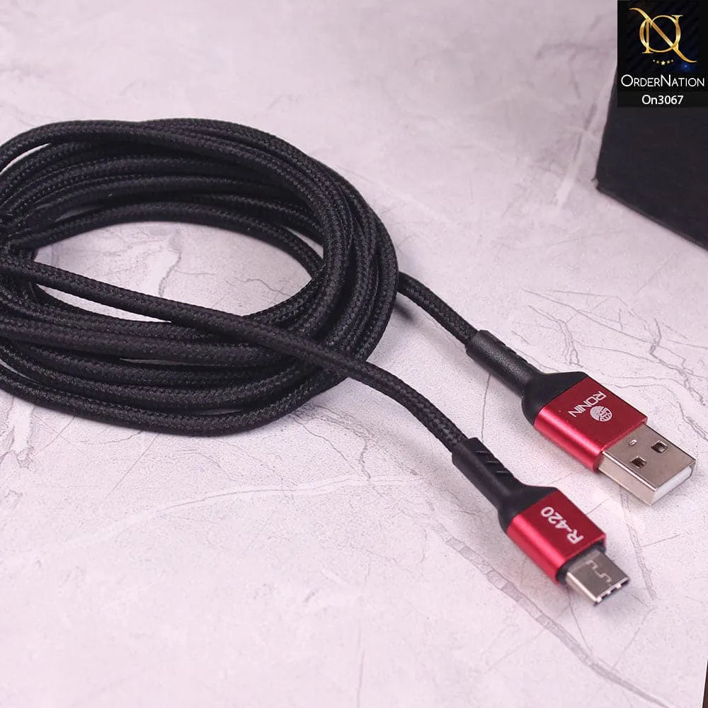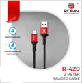 RONIN R-420 USB Type C Data Cable 2 Meter Metallic Braided Fast Charging 2.4A 480Mbps Red Android Smartphone Tablet