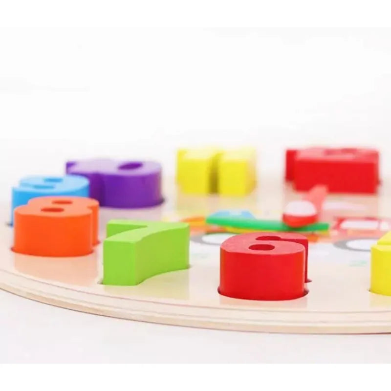 12 Number-Shaped Blocks: Includes 12 removable blocks (numbers 1 to 12) that fit into corresponding recessed wells, encouraging shape sorting and number recognition.