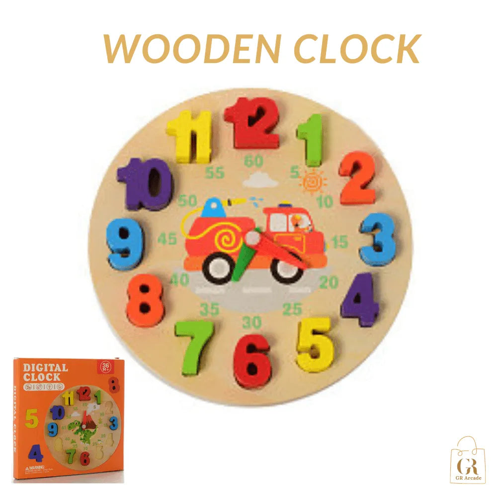 Rubber Wood 12 Numbers Blocks Digital Learning Clock for Kids
